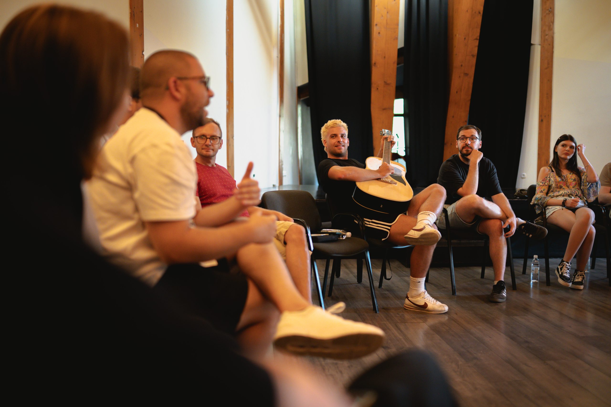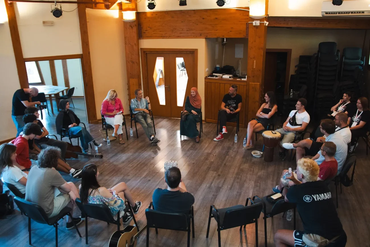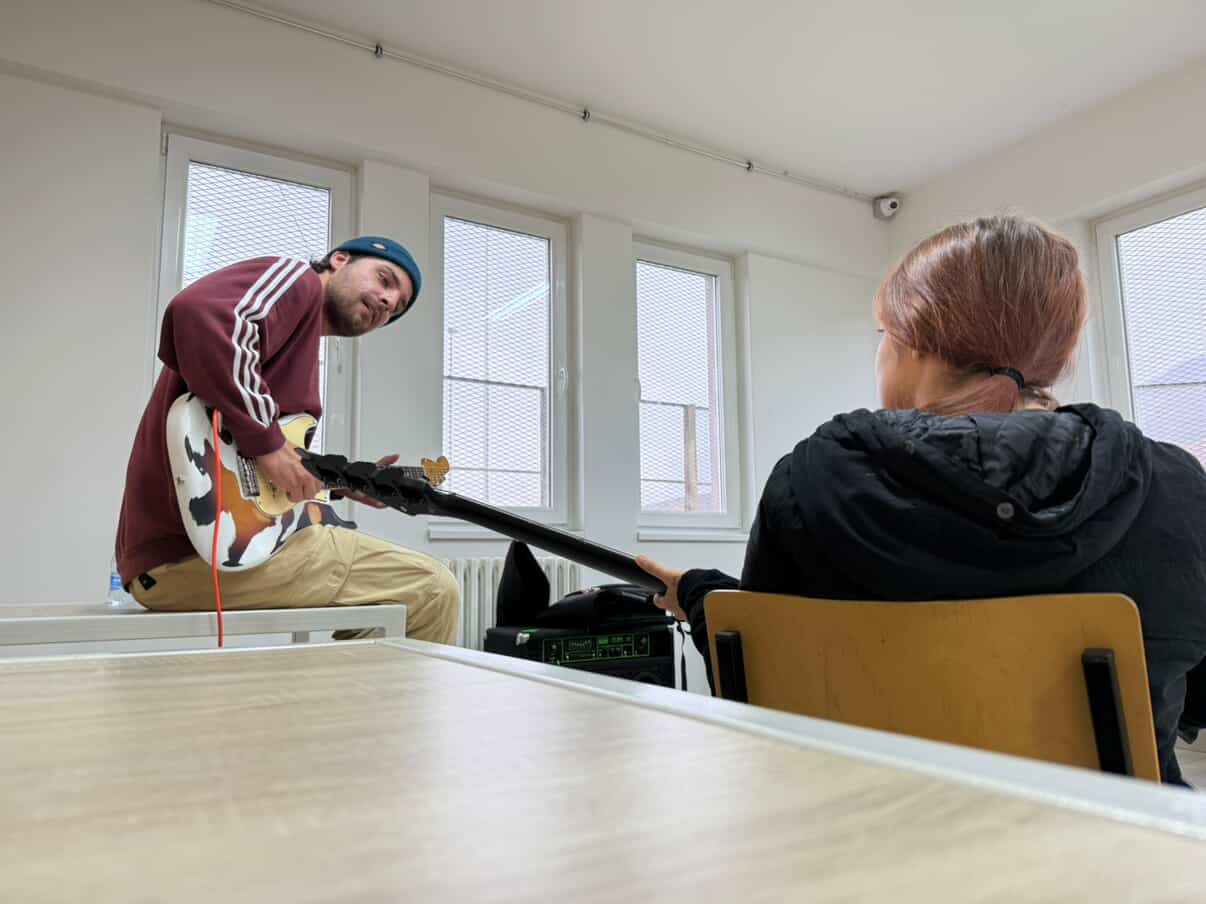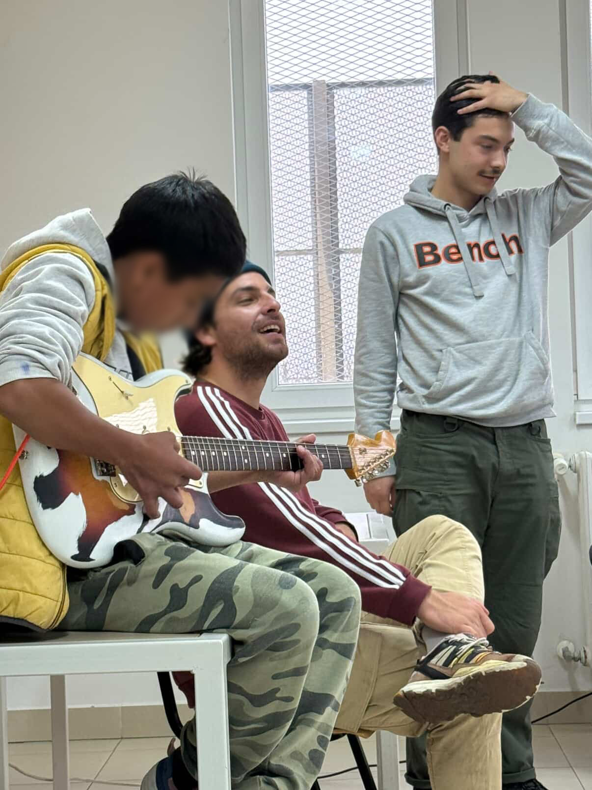 From public rehearsals with a full band to solo sessions in geriatric hospitals in Skopje, and from daycare centres for people with special needs to clubs and arenas, Luka’s music workshops have evolved significantly over the years. What began as performing carefully curated music for elders in terminal care has developed into spontaneous choir arrangements in daycare settings, and later into full-scale workshops with youth and vulnerable groups across the region.